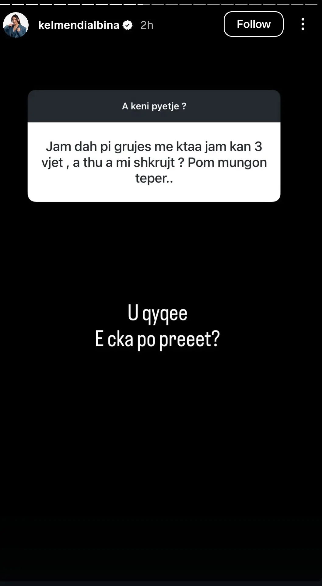 Këngëtarja e njohur Albina Kelmendi ka bërë bujë në rrjetet sociale pas një komenti të pazakontë që mori nga një ndjekës gjatë një sesioni pyetje-përgjigje në Instagram.