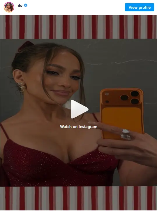 Në imazhin e publikuar, Lopez shfaqet me një fustan të kuq të shndritshëm, i cili thekson bukurinë e saj rinore.