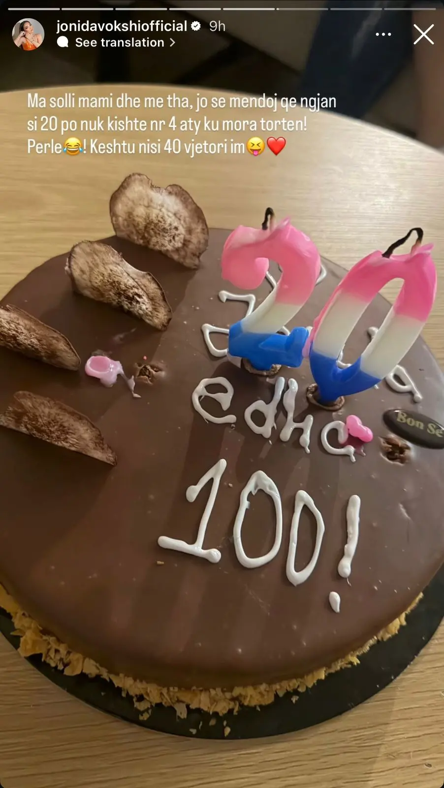 Një moment komik ka ndodhur kur nëna e saj i ka surprizuar me një tortë, por me një detaj të veçantë: qirinjtë tregonin numrin “20”.