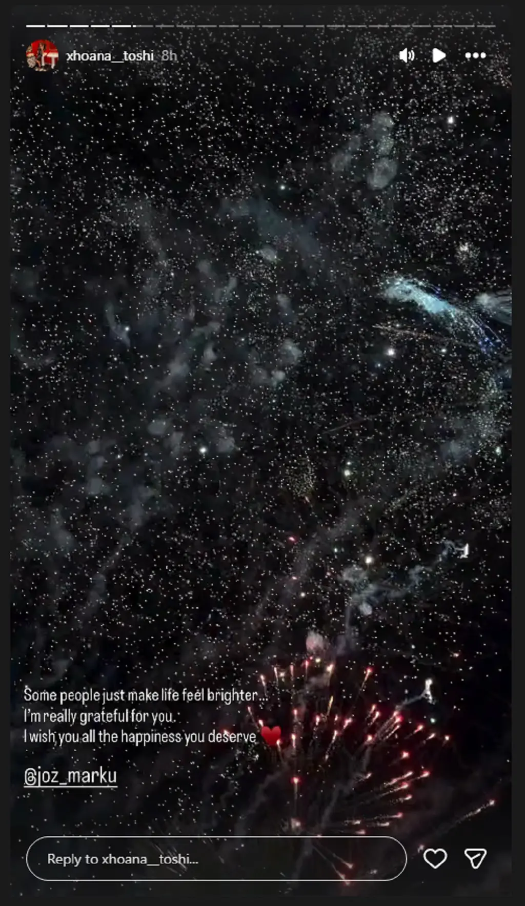“Disa njerëz thjesht e bëjnë jetën të ndihet më e ndritshme. Jam vërtet mirënjohëse për ty”! Të uroj gjithë lumturinë që meriton joz_marku”!