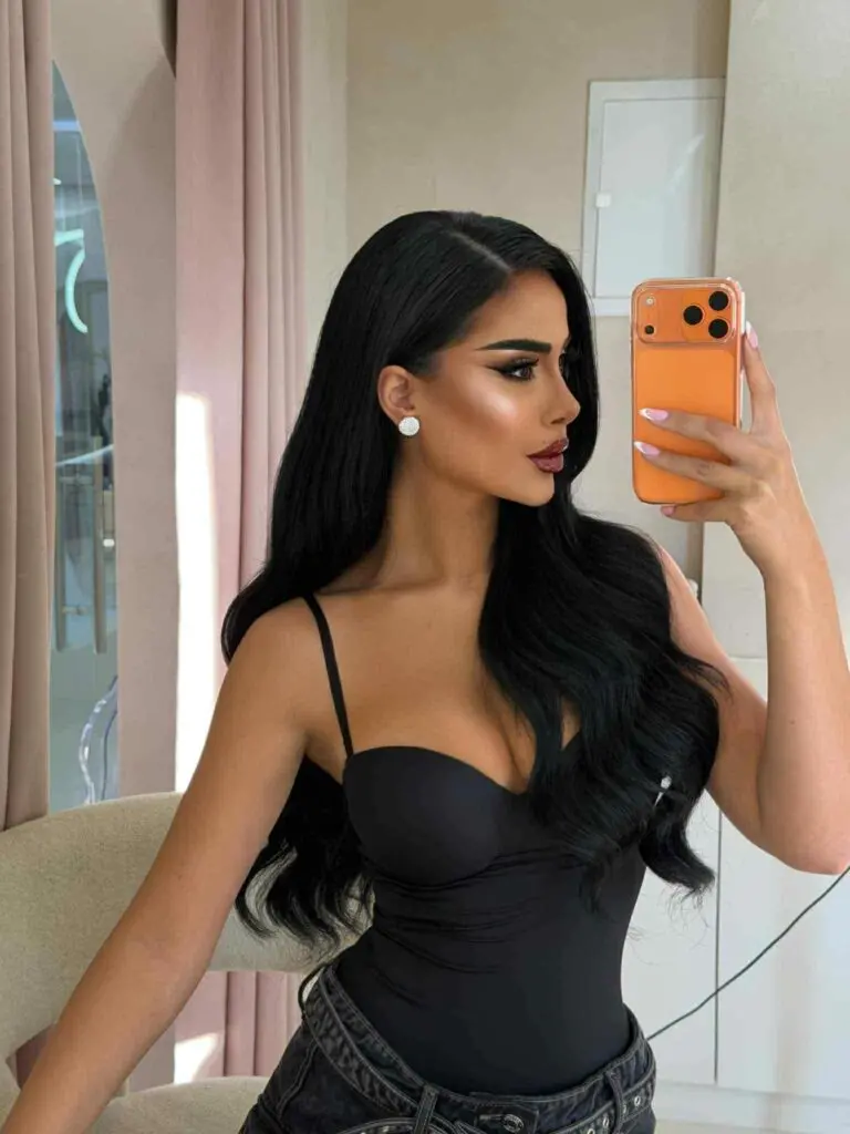 Detajet e paraqitjes së saj, nga grimi deri te veshja, janë përzgjedhur me kujdes, duke e bërë atë të duket mahnitëse.