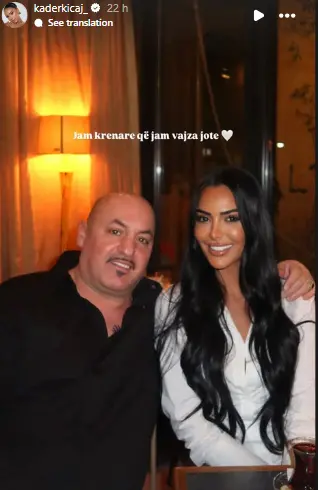 Në një moment të veçantë familjar, Kaderi shfaqet me një buzëqeshje të madhe, duke reflektuar lumturinë dhe krenarinë që ndjen për prindin e saj.