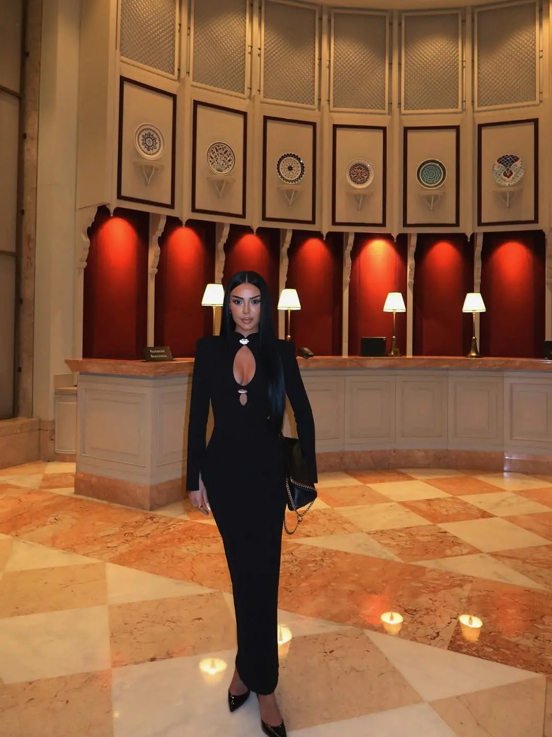 E veshur me fustan të zi e të ngushtë, Kaderi ekspozon linjat e saj trupore në top formë. /IndeksOnline/
