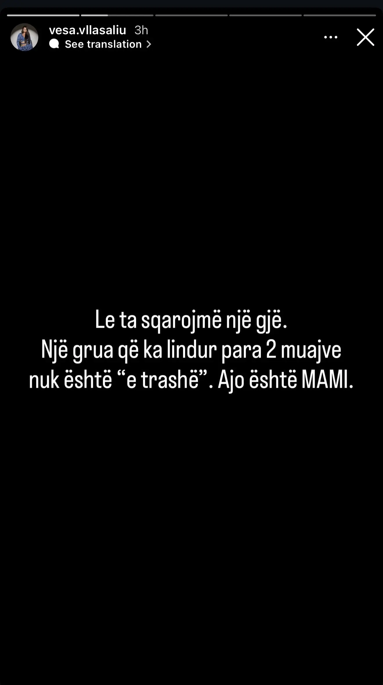 Me këtë reagim, Vesa ka arritur të sjellë një mesazh të qartë: Nënat e reja meritojnë mbështetje dhe dashuri, jo kritika. Ajo fton të gjithë të reflektojnë mbi mënyrën se si flasin dhe veprojnë ndaj njëra-tjetrës, duke krijuar një shoqëri më të mirë për të gjitha gratë.
