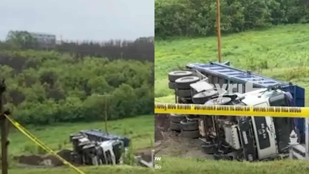 Kamioni i rrokullisur, pamje nga vendi ku një punëtor humbi jetën në Gjakovë