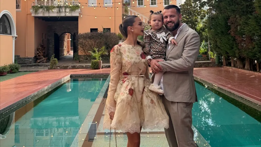 Mjedisi i zgjedhur, pranë një pishine elegante, e kombinuar me ndriçim të ngrohtë, krijon atmosferën ideale për një moment unik familjar. Kiara dhe Luizi duket se kanë gjetur çelësin e lumturisë, dhe këtë e tregojnë përmes çdo fotoje që ndajnë.