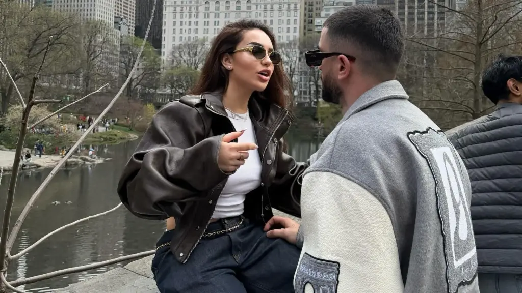 Në foto, ajo shfaqet në një ambient urban, duke shijuar momentin me një kombinim bijesh të rehatshme dhe me stil.