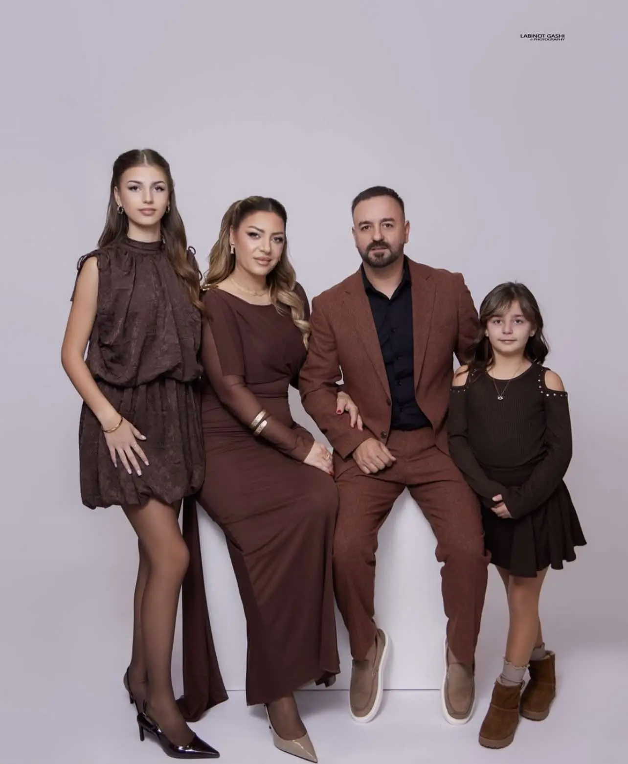 Familja paraqitet me veshje elegante dhe të kuruara me kujdes, duke reflektuar një atmosferë të veçantë festash. Kjo paraqitje e bukur ka tërhequr vëmendjen e fansave dhe mediave, duke i bërë ata të ndihen më afër artistit dhe jetës së tij personale.