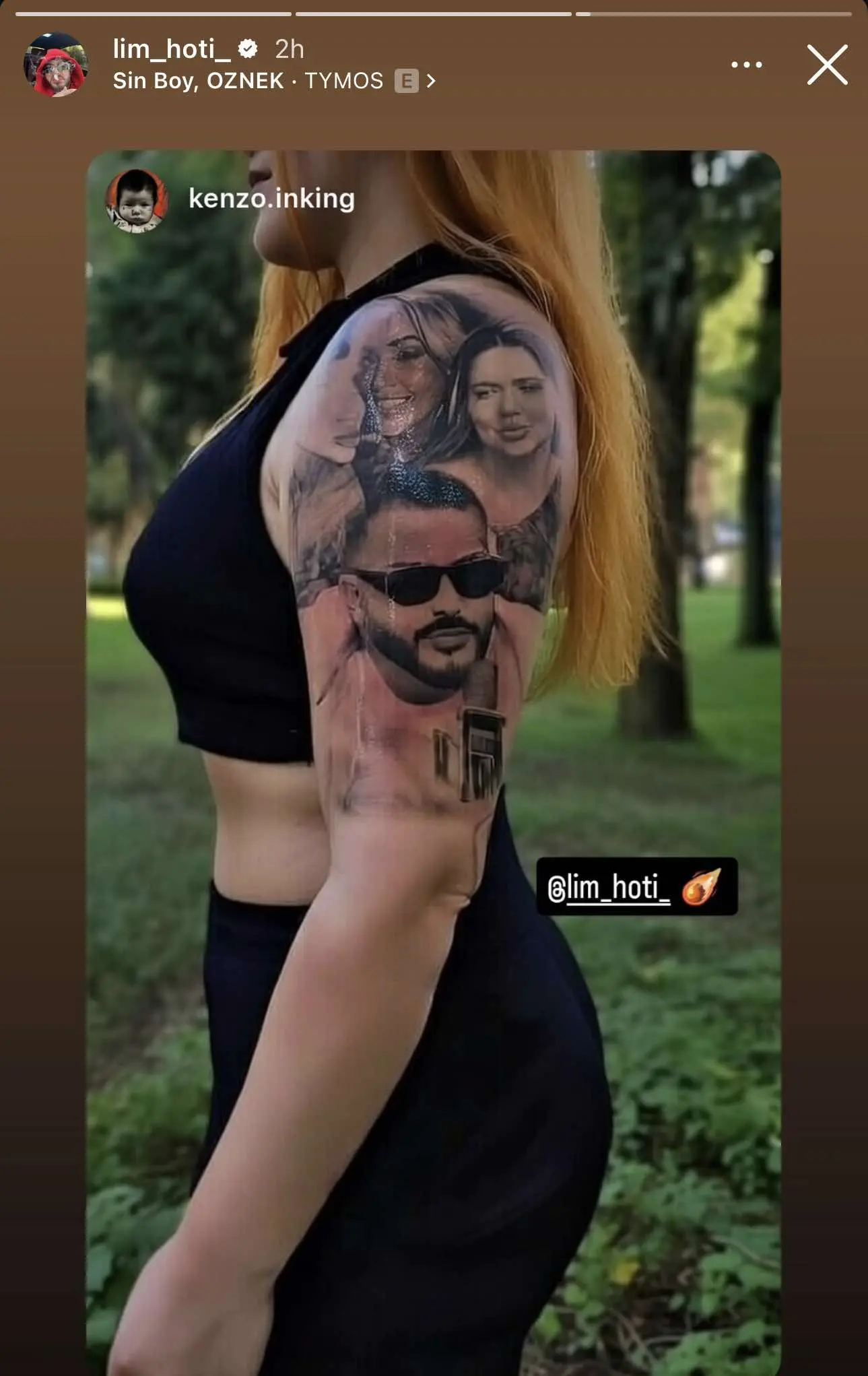 Në imazh shihet krahu i një gruaje, në të cilin është tatuazhuar fytyra e Lim Hotit.