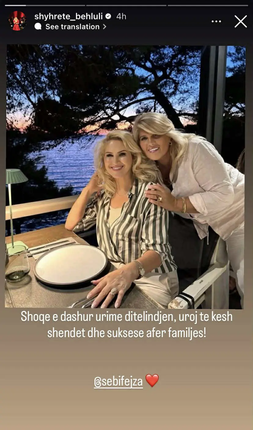 Urimi i saj është shoqëruar me një fotografi të bukur, që tregon afërsinë dhe dashurinë që ndan me këtë mike të veçantë. Këto momente personale janë ato që e bëjnë Shyhreten të duket më e afërt me fansat e saj.