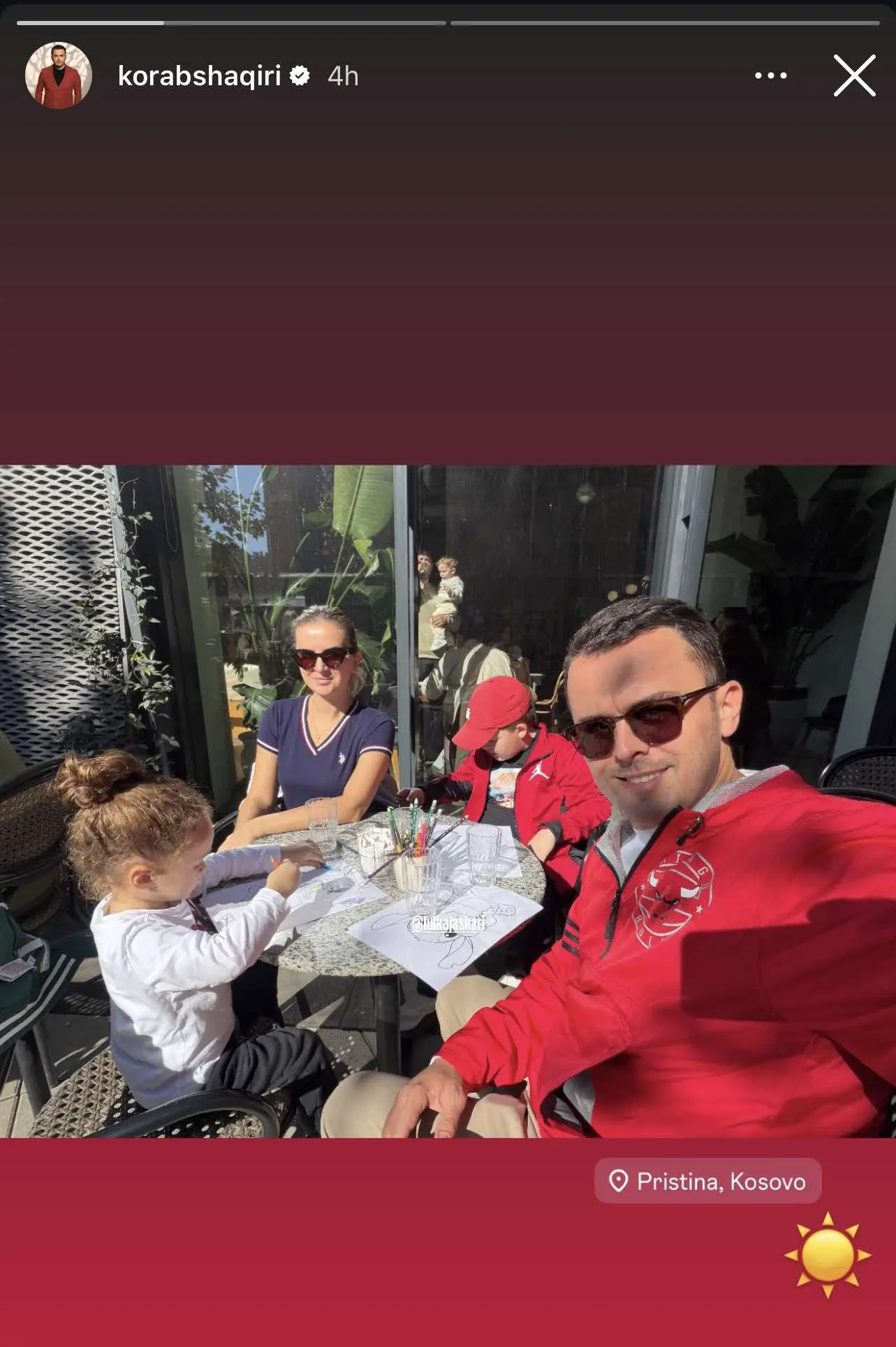 Në një postim të fundit në InstaStory, ai ka ndarë një pamje të bukur nga një tarracë në Prishtinë, ku shijon një kafe në shoqërinë e gruas dhe dy djemve të tij. Ky moment i thjeshtë tregon një anë tjetër të artistit, atë të babait të përkushtuar.