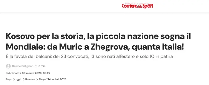 Mediumi italian, Corriere dello Sport, e ka quajtur Kosovën një tjetër “përrallë ballkanike”, duke e lidhur historinë e saj me rrënjët e saj të thella dhe sfidat që ka kaluar. Kjo ndeshje është një mundësi për të treguar se si Kosova ka arritur të bëhet një emër i njohur në futbollin evropian.
