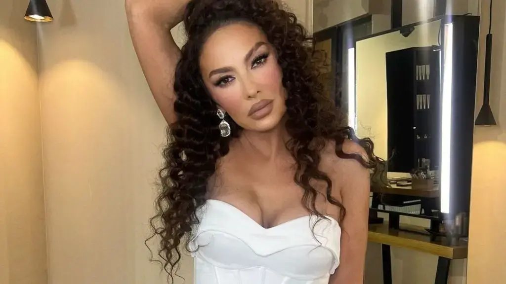 Këngëtarja ka veshur një këmishë të bardhë të kombinuar me një fund me lule, që i falë asaj freski dhe pamje plotësisht verore.