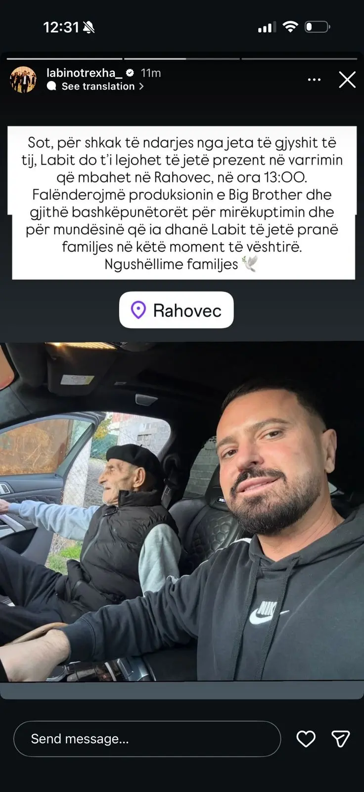 Labinoti merr lejen për të nderuar gjyshin e tij në një moment të vështirë