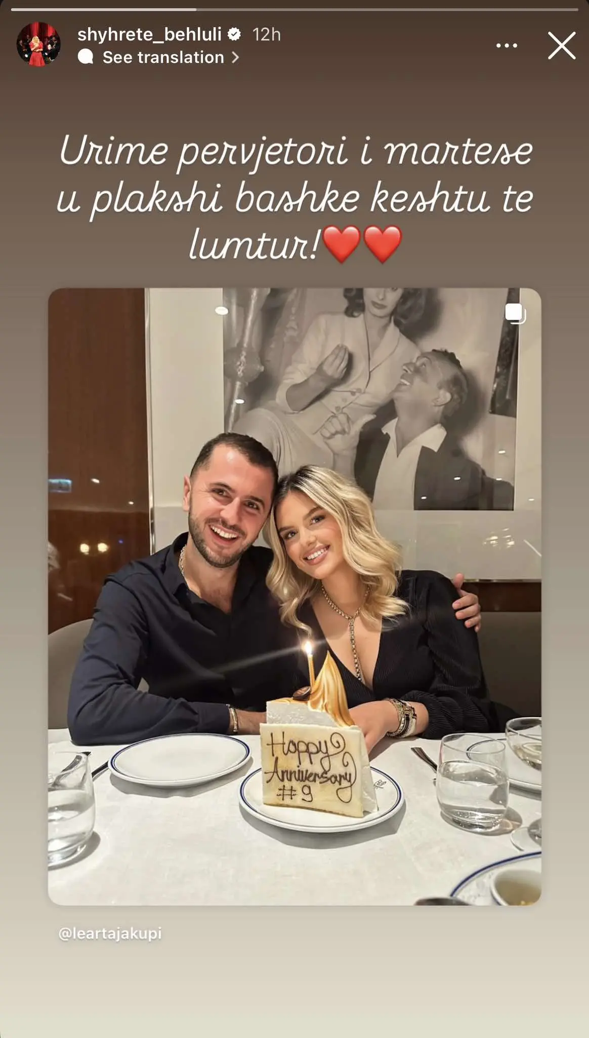Në këtë rast të veçantë, edhe këngëtarja Shyhrete Behluli ka uruar publikisht çiftin, duke i drejtuar fjalë të ngrohta. Fjalët e saj kanë sjellë një atmosferë të veçantë, duke theksuar rëndësinë e dashurisë dhe mbështetjes në një marrëdhënie.
