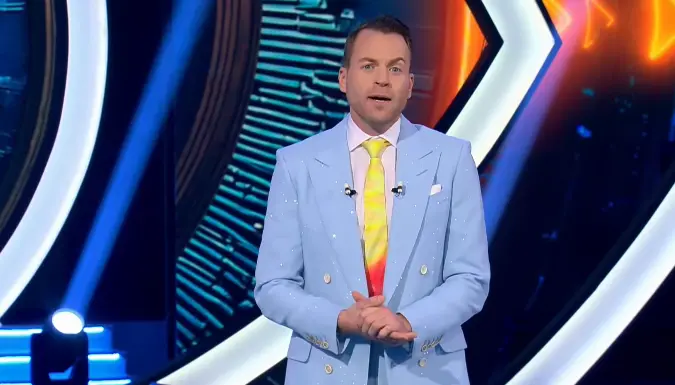 Me një kostum blu të ndritshëm dhe xixa që kapnin dritën, moderatorin e këtij edicioni e shohim të shfaqet me një stil që nuk kalon pa u vënë re. Kravatë e verdhë e plotësonte pamjen, duke e bërë atë të duket edhe më tërheqës.