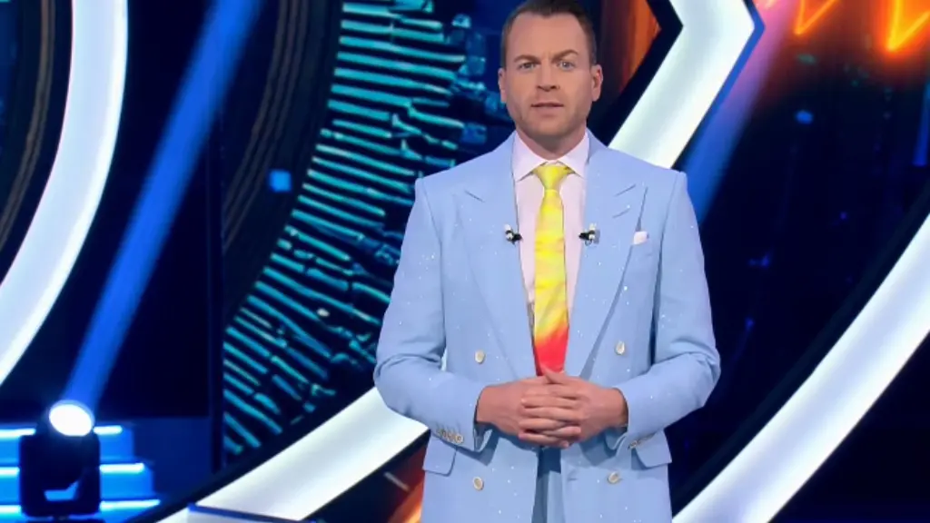 Me një kostum blu të ndritshëm dhe xixa që kapnin dritën, moderatorin e këtij edicioni e shohim të shfaqet me një stil që nuk kalon pa u vënë re. Kravatë e verdhë e plotësonte pamjen, duke e bërë atë të duket edhe më tërheqës.