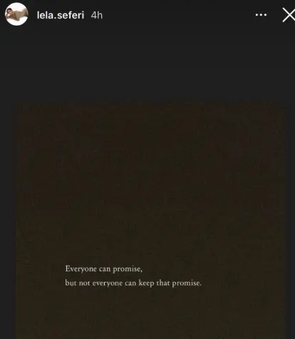 “Të gjithë mund të premtojnë, por jo të gjithë mund ta mbajnë atë premtim”, ka shkruar ajo në një sfond të errët. Kjo frazë e thjeshtë, por e fuqishme, tregon një ndjenjë zhgënjimi, por gjithashtu një qetësi të brendshme që Lela po përjeton pas ndarjes.