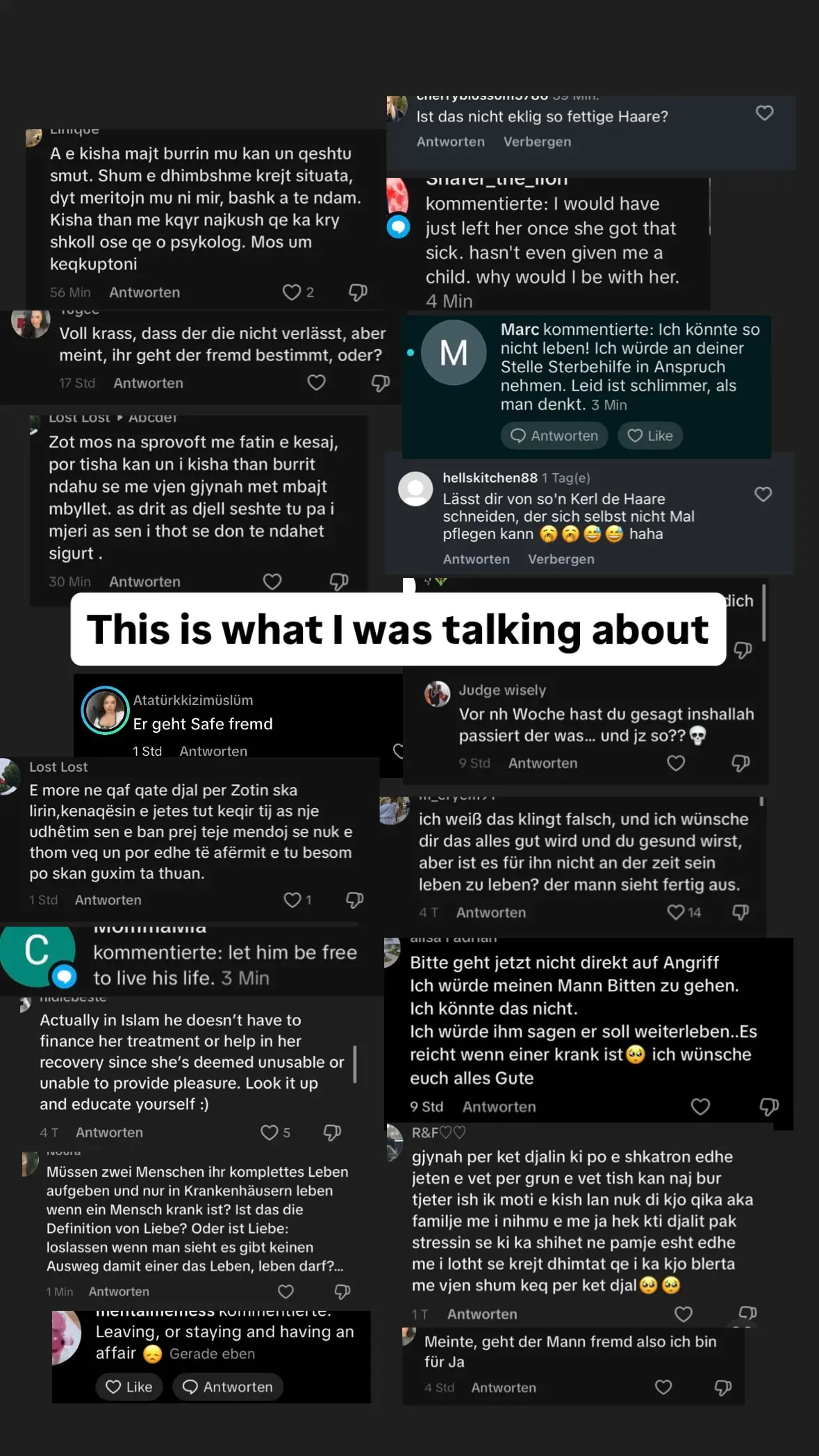 - Presioni për “të krijuar familje”: Komentuesit e kanë shfrytëzuar sëmundjen e Blertës për të kritikuar planet e saj për të ardhmen, duke thënë: “Tash është rendi jot me e lan djalin sa asht i ri me kriju familje…”