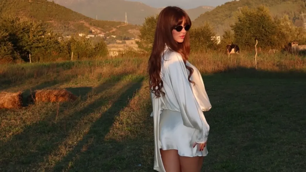 Në një fushë të hapur, drita e perëndimit të diellit ndriçon siluetën e saj, duke krijuar një atmosferë të ngrohtë dhe të ëmbël që rrallëherë mund ta shijojmë në postimet e rrjeteve sociale.