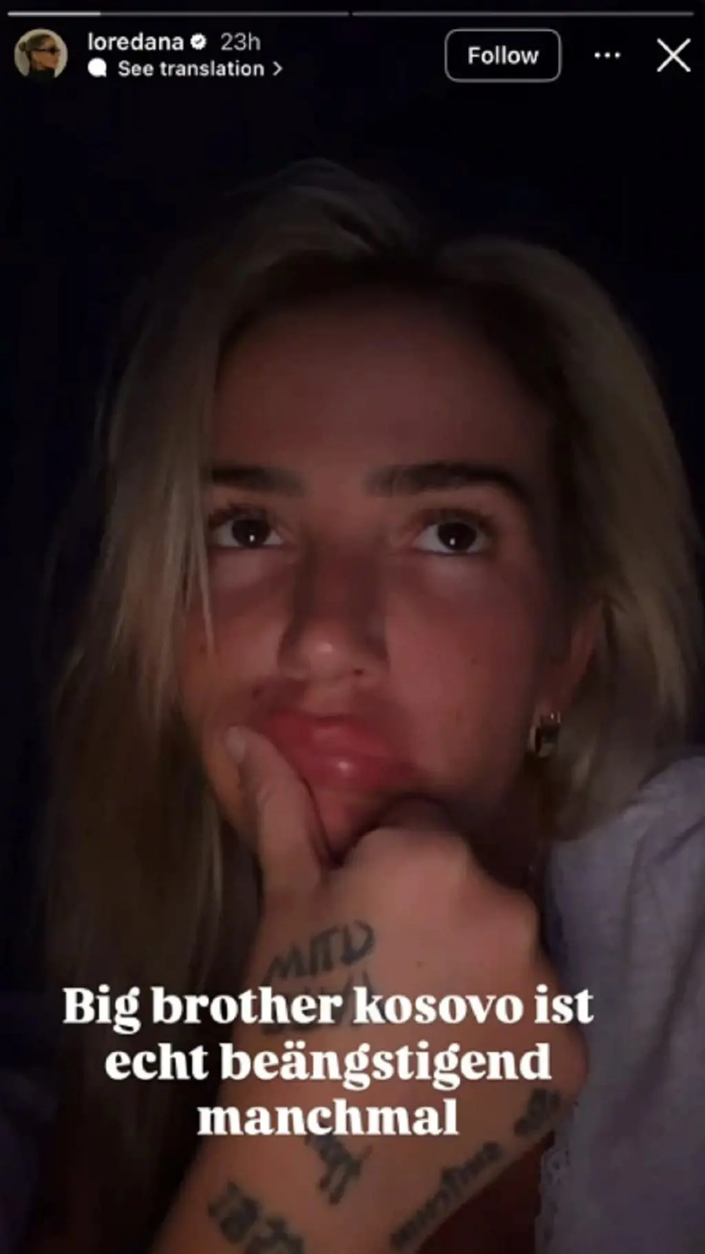 Në një postim të ndarë në InstaStory, Loredana ka shkruar: “Big Brother Kosova është vërtetë frikësues ndonjëherë”.