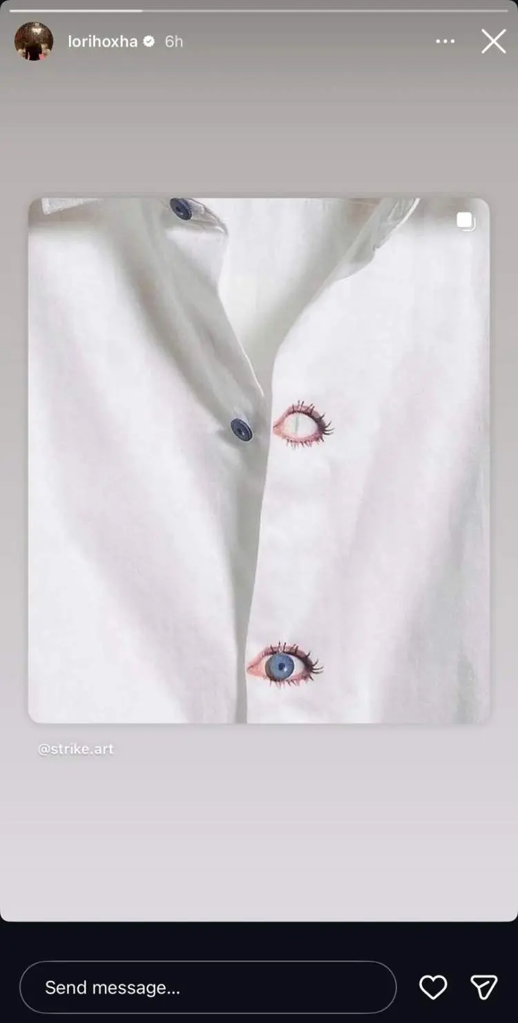 Ajo ka shpërndarë një foto artistike të një syri të vizatuar mbi një këmishë të bardhë, simbol ky që prej vitesh lidhet drejtpërdrejt me identitetin vizual të BBVA.