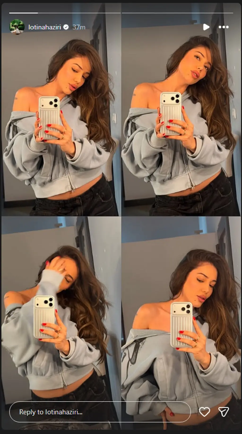 Në Instastory ka ndarë katër fotografi ku është kujdesur të shfaqet tejet sensuale.