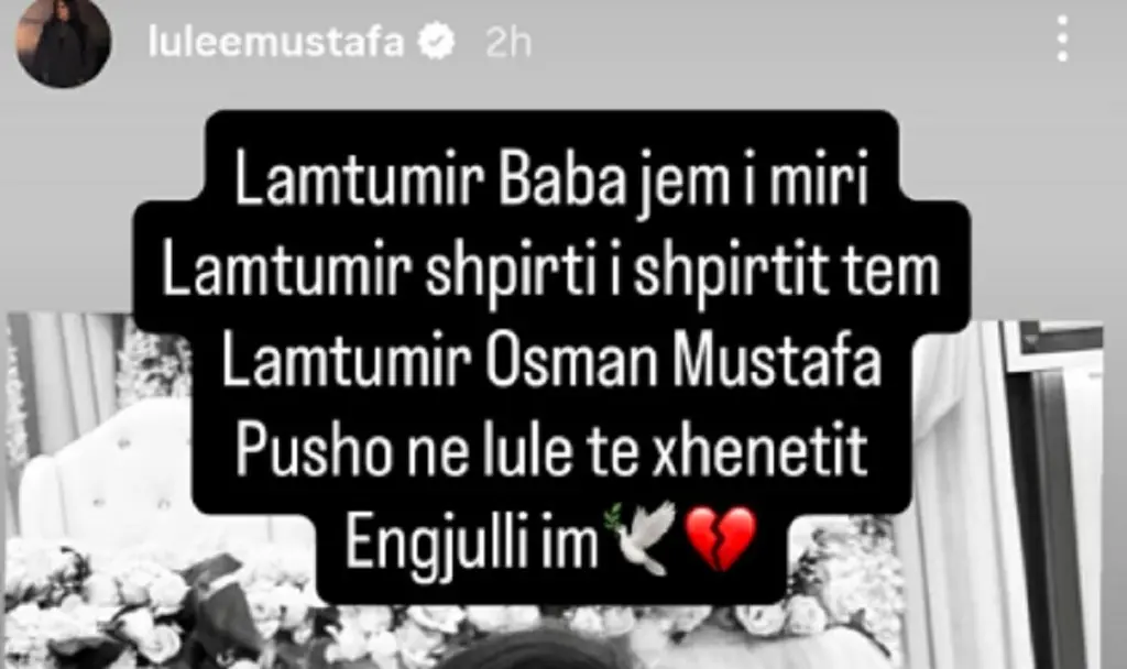 Këngëtarja Lule Mustafa ka ndarë një mesazh prekës në rrjetet sociale pas ndarjes nga jeta të babait të saj, Osman Mustafa.