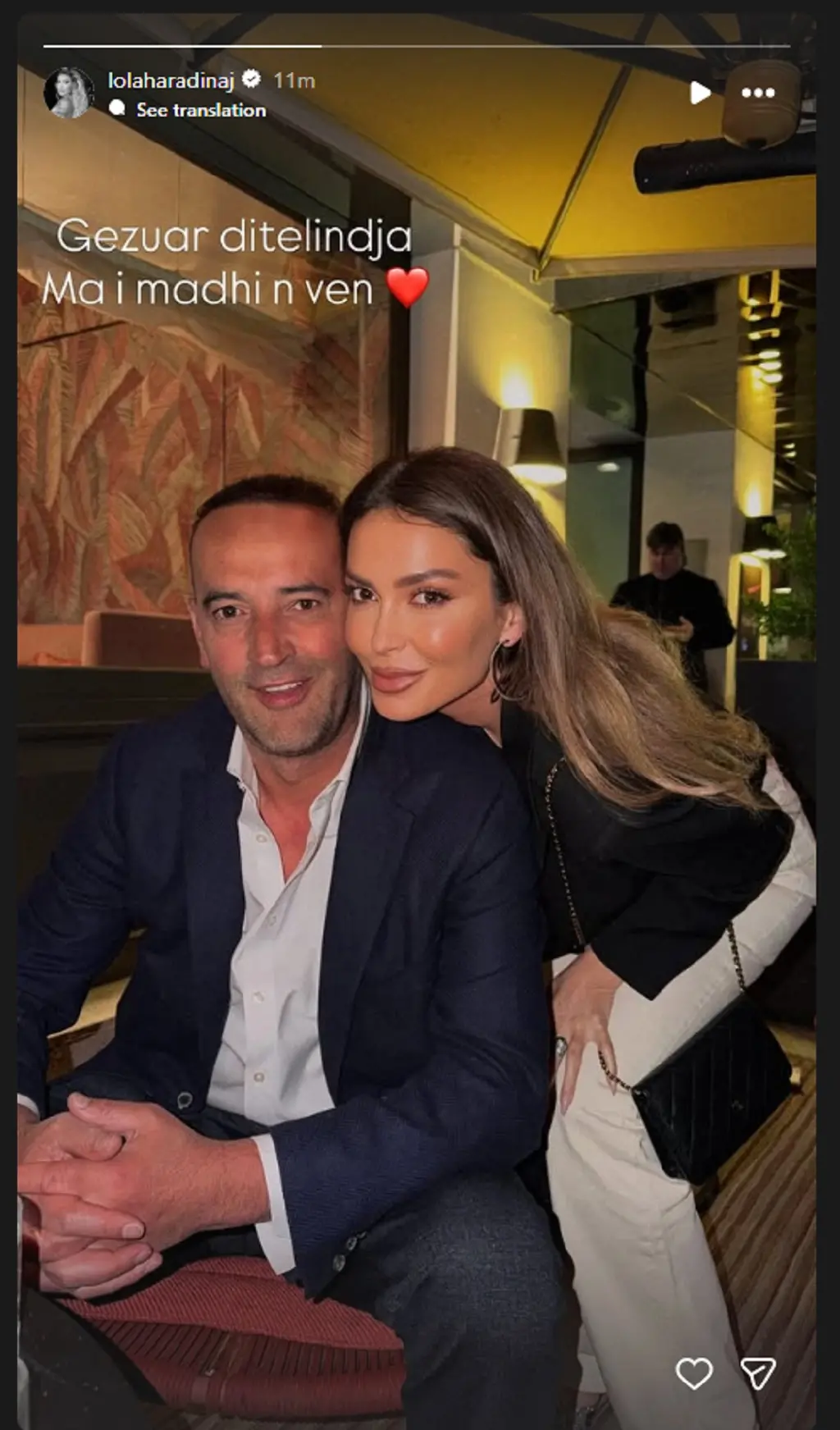 Në mesin e urimeve të shumta vëmendje mori ai i bashkëshortes, Lolës, e cila ndau një fotografi të bukur krah Dautit.