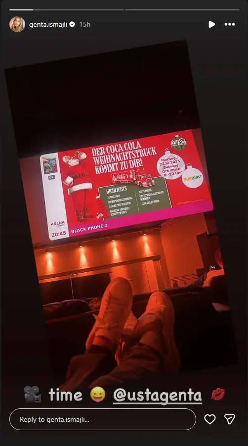 Çifti është shfaqur duke shijuar një mbrëmje romantike, të ulur pranë njëri-tjetrit teksa shikonin një film, në një atmosferë të qetë dhe intime.