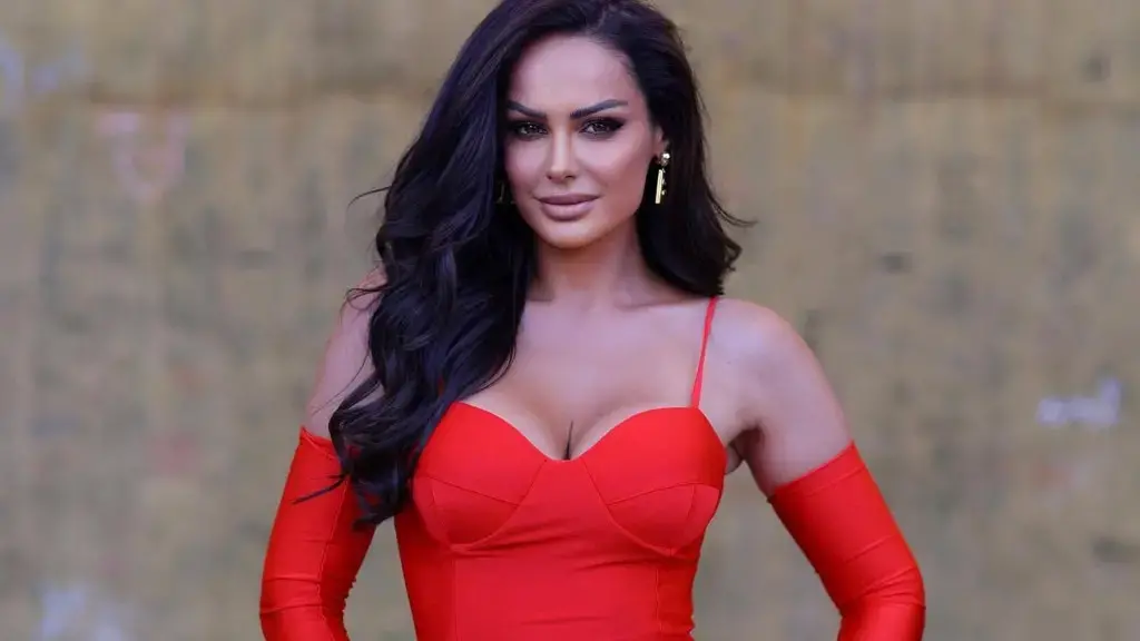 E veshur me fustan të kuq dhe të ngushtë, Xhuli ekspozon linjat e saj trupore në top formë.