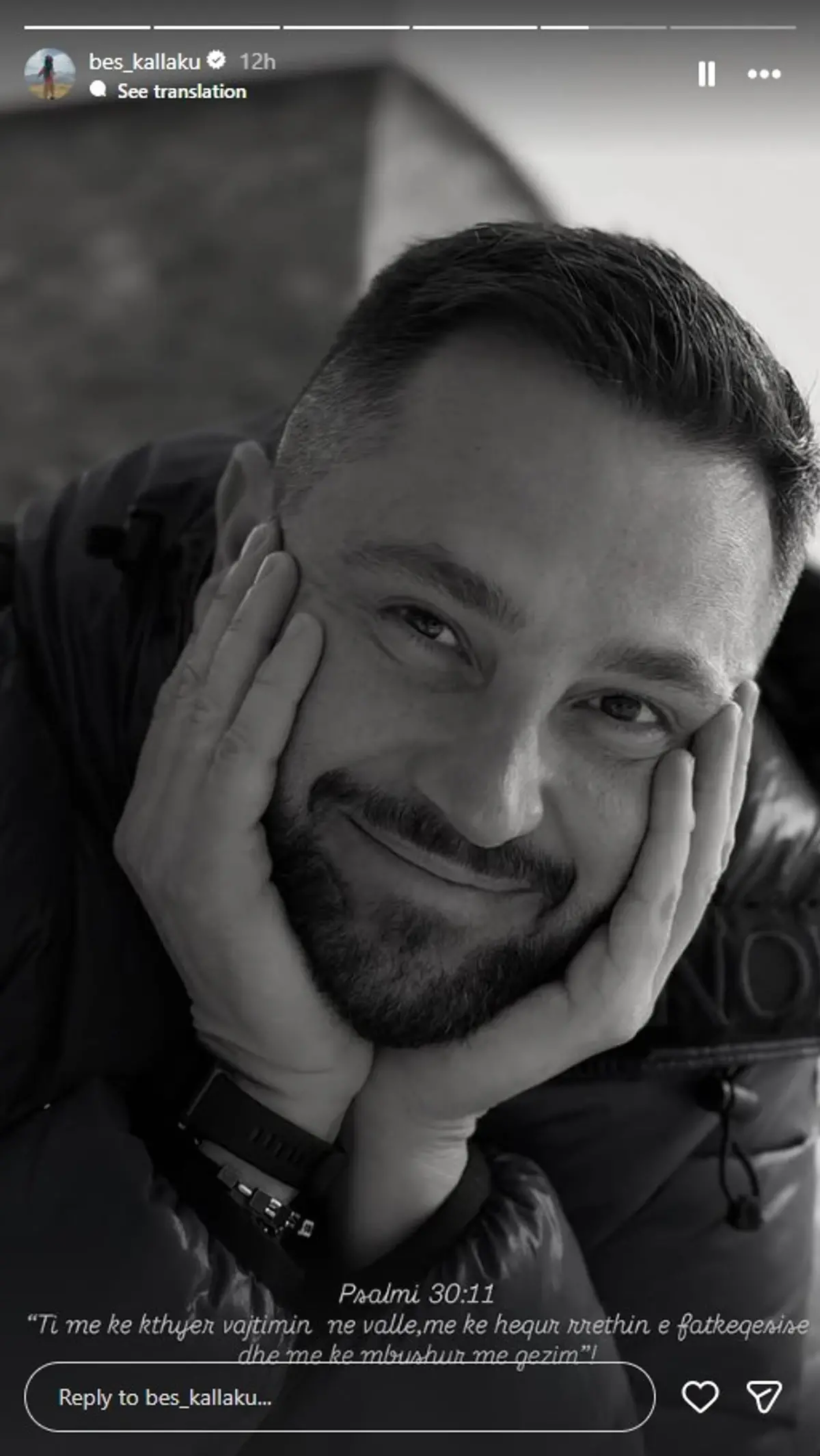 Postimi i tij në Instagram përmban një citat biblik që thekson gjendjen e tij shpirtërore. Ai ka zgjedhur të citojë Psalmin 30:11, duke thënë: “Ti më ke kthyer vajtimin në valle, më ke hequr rrethin e fatkeqësisë dhe më ke mbushur me gëzim!” Kjo shprehje tregon se si ai ka arritur të transformojë dhimbjen në lumturi.