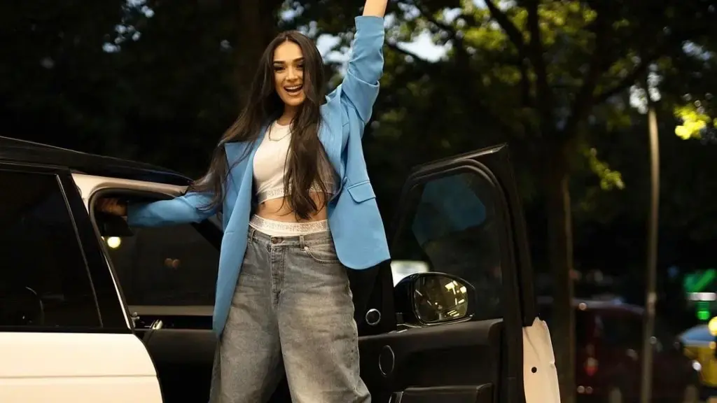 Klea Huta postoi disa fotografi ku shihet se po reklamon një veturë.