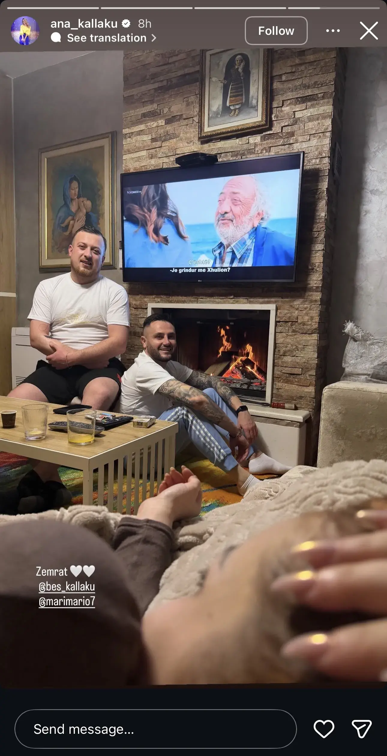 Më pas, Ana postoi një foto tjetër, ku shfaqet e shtrirë në prehrin e partneres së re të vëllait, ndërsa kjo e fundit i përkëdhel flokët.
