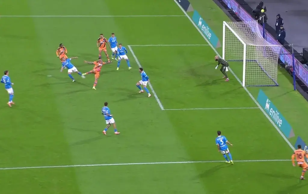 Goli i dytë i Neres erdhi në minutën e 38-të, pas një asistimi nga Scot McTominay. Me një goditje të fuqishme brenda zonës, ai shkundi rrjetën për herë të dytë, duke e bërë rezultatin 2-0 për Napolin. Por kjo nuk ishte e gjitha, pasi Noa Lang trefishoi shifrat me një gol të bukur me kokë në fund të pjesës së parë.