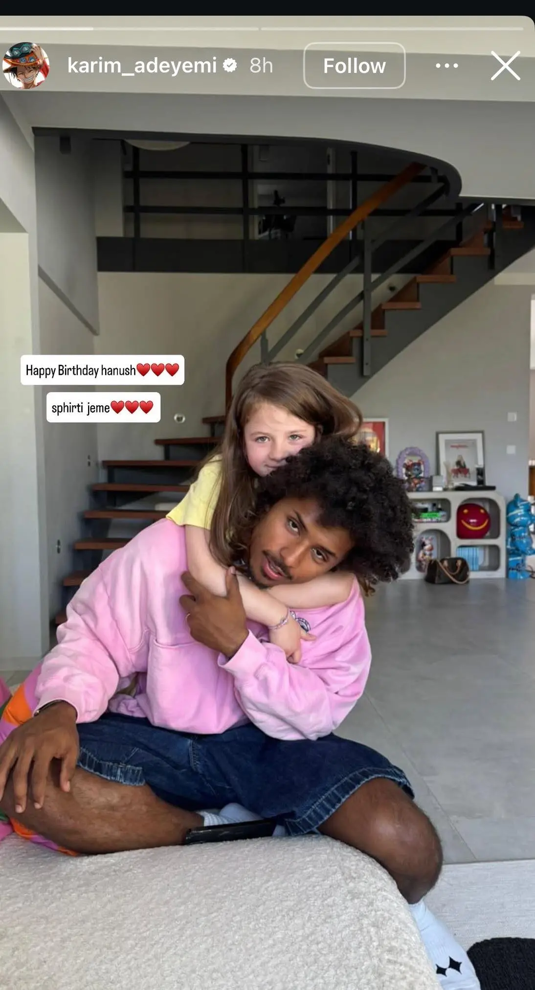 Futbollisti i njohur Karim Adeymi, në një moment të veçantë për familjen e tij, zgjodhi të uronte vajzën e bashkëshortes me një mesazh të ngrohtë në gjuhën shqipe. Ky veprim tregon lidhjen e fortë që ai ka me kulturën dhe gjuhën e saj.