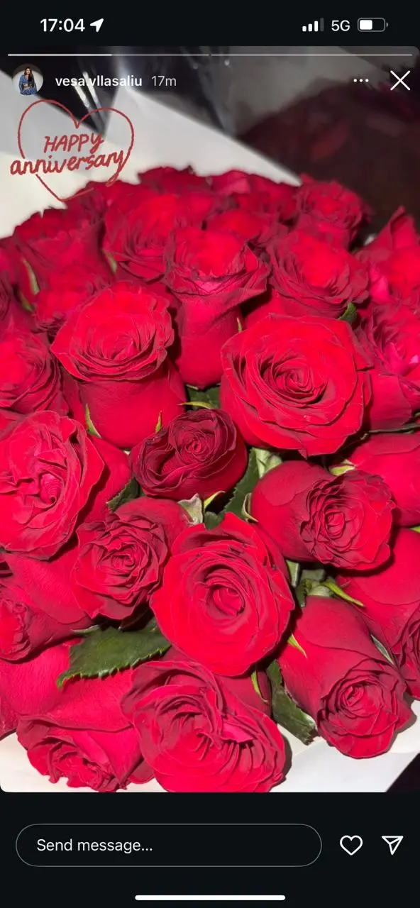 Vesa ka postuar një kolazh fotosh në Instagram, ku shfaqet e përqafuar me partnerin e saj, Mirlindin. Në këtë moment të veçantë, ajo ka zgjedhur të shoqërojë imazhet me një buqetë trëndafilash të kuq, simbol i dashurisë dhe pasionit, dhe mbishkrimin “Gëzuar përvjetorin”. Kjo tregon se ata e vlerësojnë çdo çast së bashku.