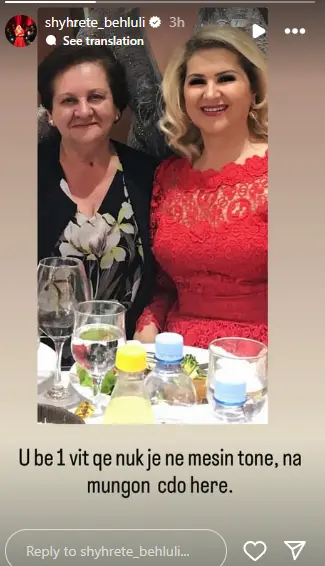 Shyhrete Behluli është një figurë e njohur në botën e muzikës shqiptare, dhe angazhimi i saj në rrjetet sociale shpesh reflekton jetën e saj personale. Kjo ndarje e ndjenjave është një shembull i qartë se si artistët mund të përdorin platformën e tyre për të ndarë emocione dhe për të krijuar një lidhje më të fortë me publikun.