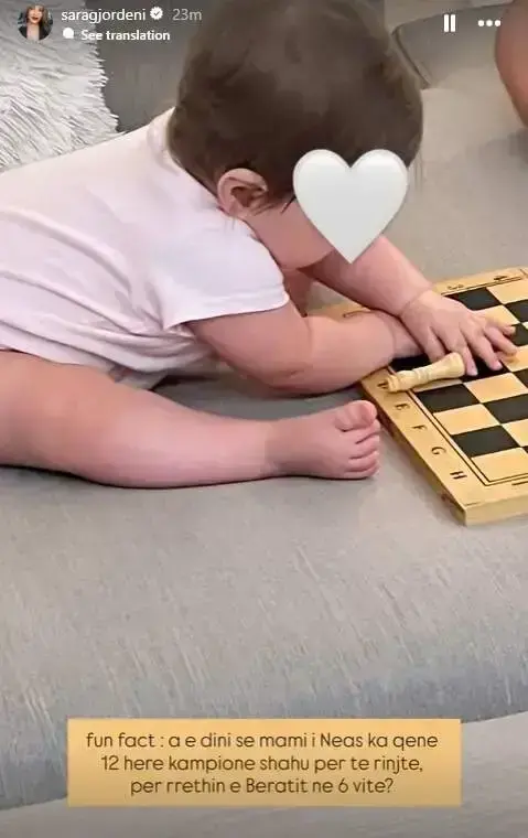 Ajo e ndau këtë fakt surprizues me ndjekësit e saj në rrjetet sociale duke postuar një foto të vajzës së saj të vogël pranë një tavoline shahu.