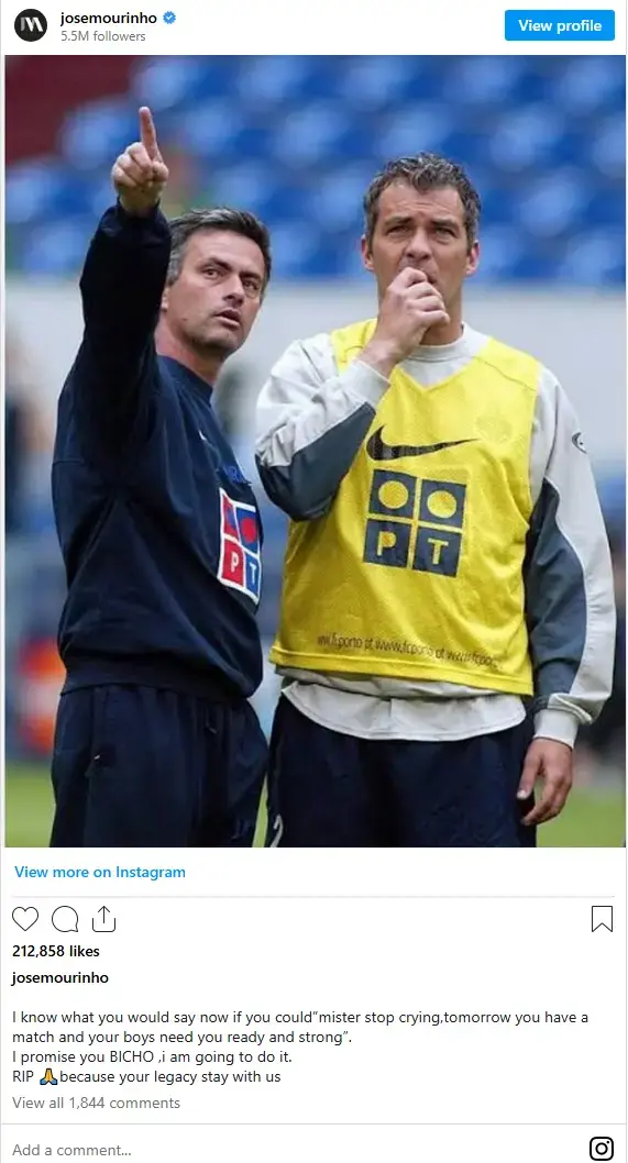 Përveç Mourinhos, mesazhet e ngushëllimit ishin të shumta dhe të sinqerta, duke shprehur dhimbjen për humbjen e një ikone. Një nga ata, Mourinhos, postoi edhe fotografi të veçanta nga koha e tyre si lojtar e trajner në Porto, duke ripërtrirë kujtimet që do të mbeten gjithnjë në zemrat e atyre që e njihnin Costa-n.