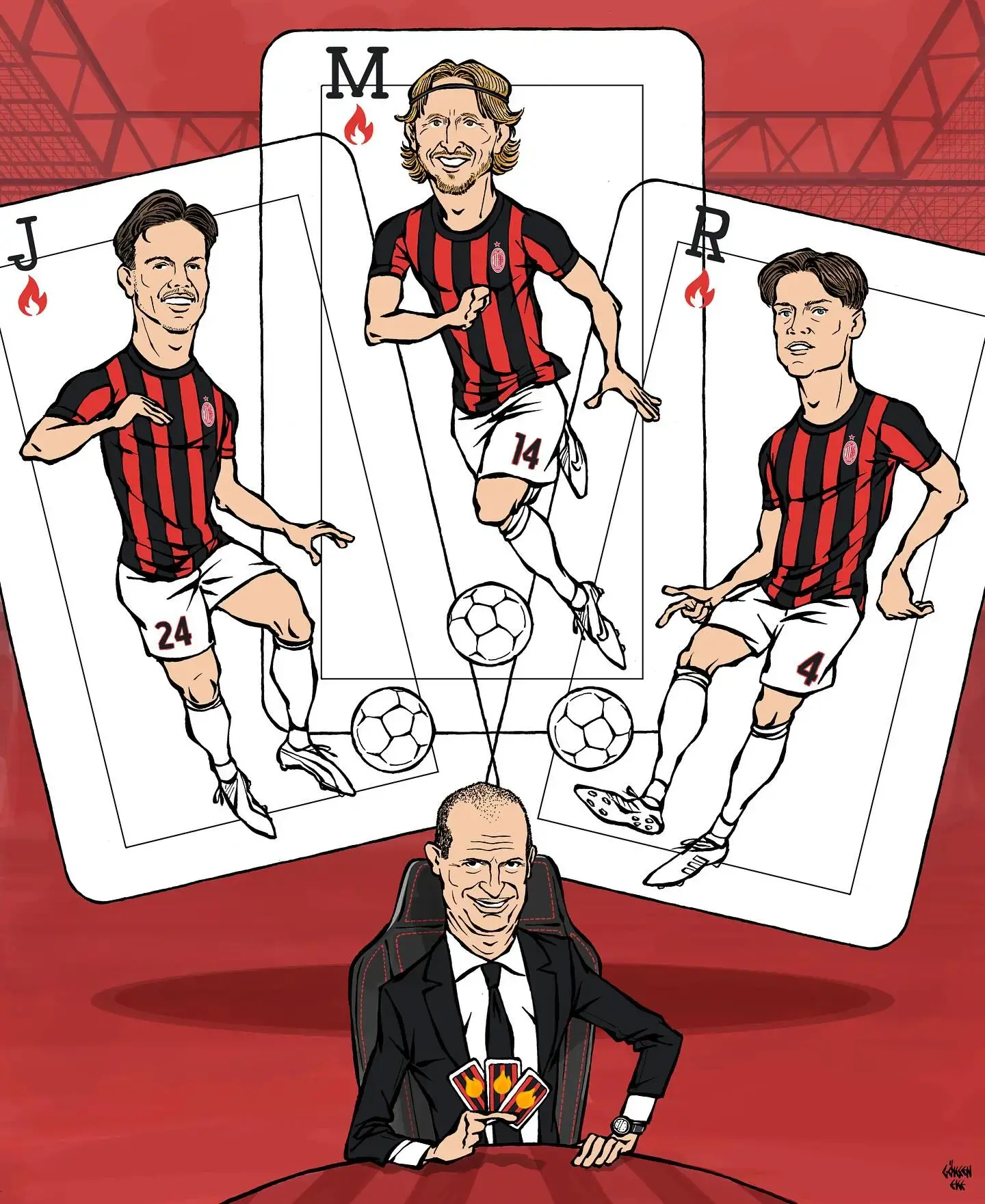 Artikujt grafikë në mediat sportive shprehin në mënyrë artistike rëndësinë e kësaj treshe: mesfushorët janë paraqitur si letra pokeri, duke theksuar se roli i tyre është çelësi në strategjinë e trajnerit Massimiliano Allegri. Me Modrić që sjell një eksperiencë dhe qetësi të pashoqe, Ricci me energjinë dhe ambicjen e tij, dhe Jashari me potencialin e tij të jashtëzakonshëm fizik, Milani duket se ka çdo gjë që i nevojitet për të krijuar një bosht tufë që mund të udhëheqë skuadrën drejt sukseseve të reja.