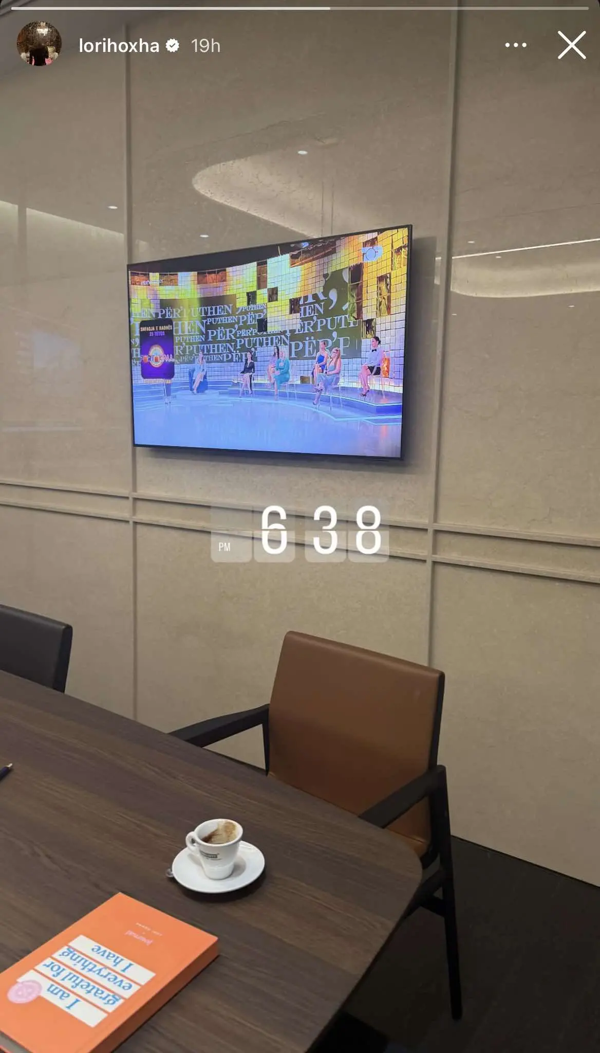 Pronarja e “Top Channel”, Lori Hoxha, ka ndarë një moment interesant nga zyra e saj, ku shfaqet duke ndjekur emisionin “Përputhen” së bashku me Megi Pojanin.