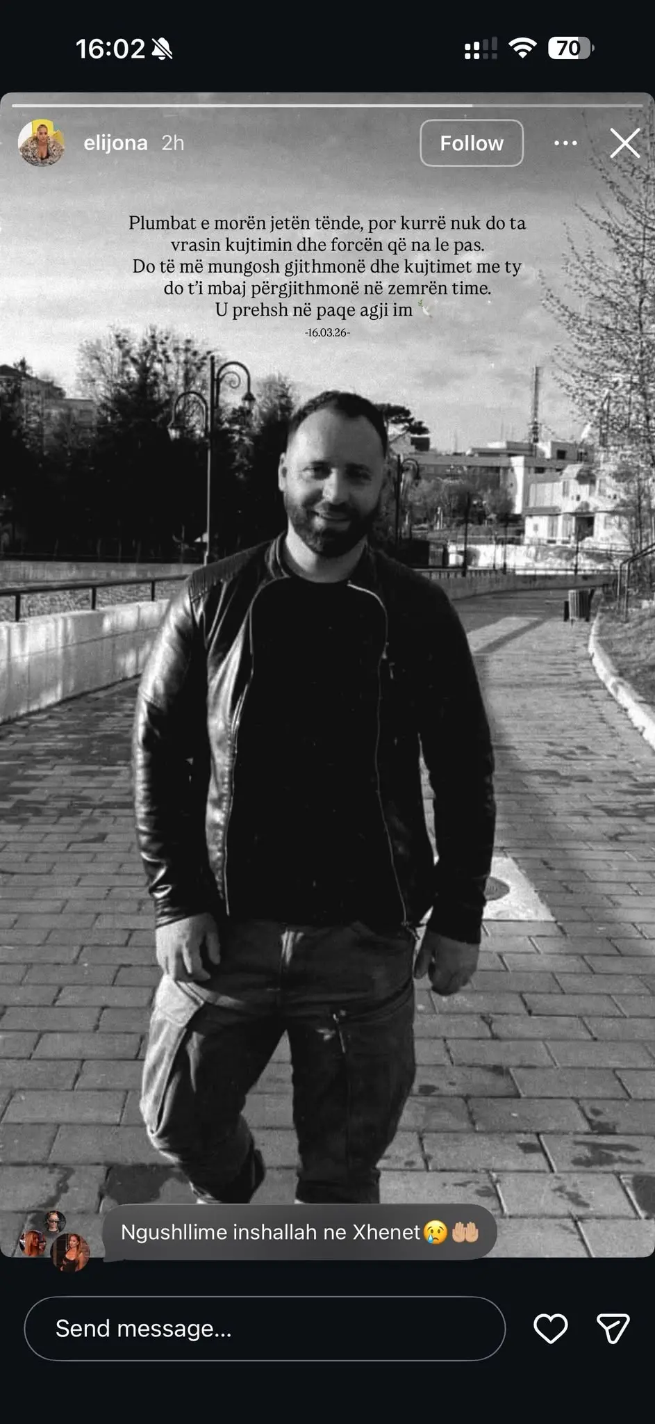 Elijona, e njohur për publikun nga pjesëmarrja e saj në Big Brother Vip Kosova, ka ndarë një mesazh prekës në Instagram, ku shpreh dhimbjen e saj për humbjen e xhaxhait.