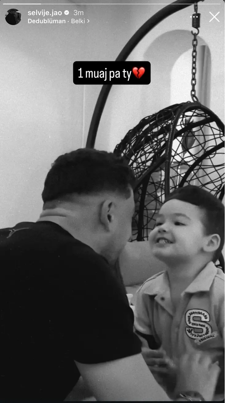 Në këtë imazh, Shpati shfaqet në një moment intim me djalin e tyre të vogël, Roelin, duke buzëqeshur me njëri-tjetrin, një pamje që flet për dashurinë e madhe që ata ndanin.