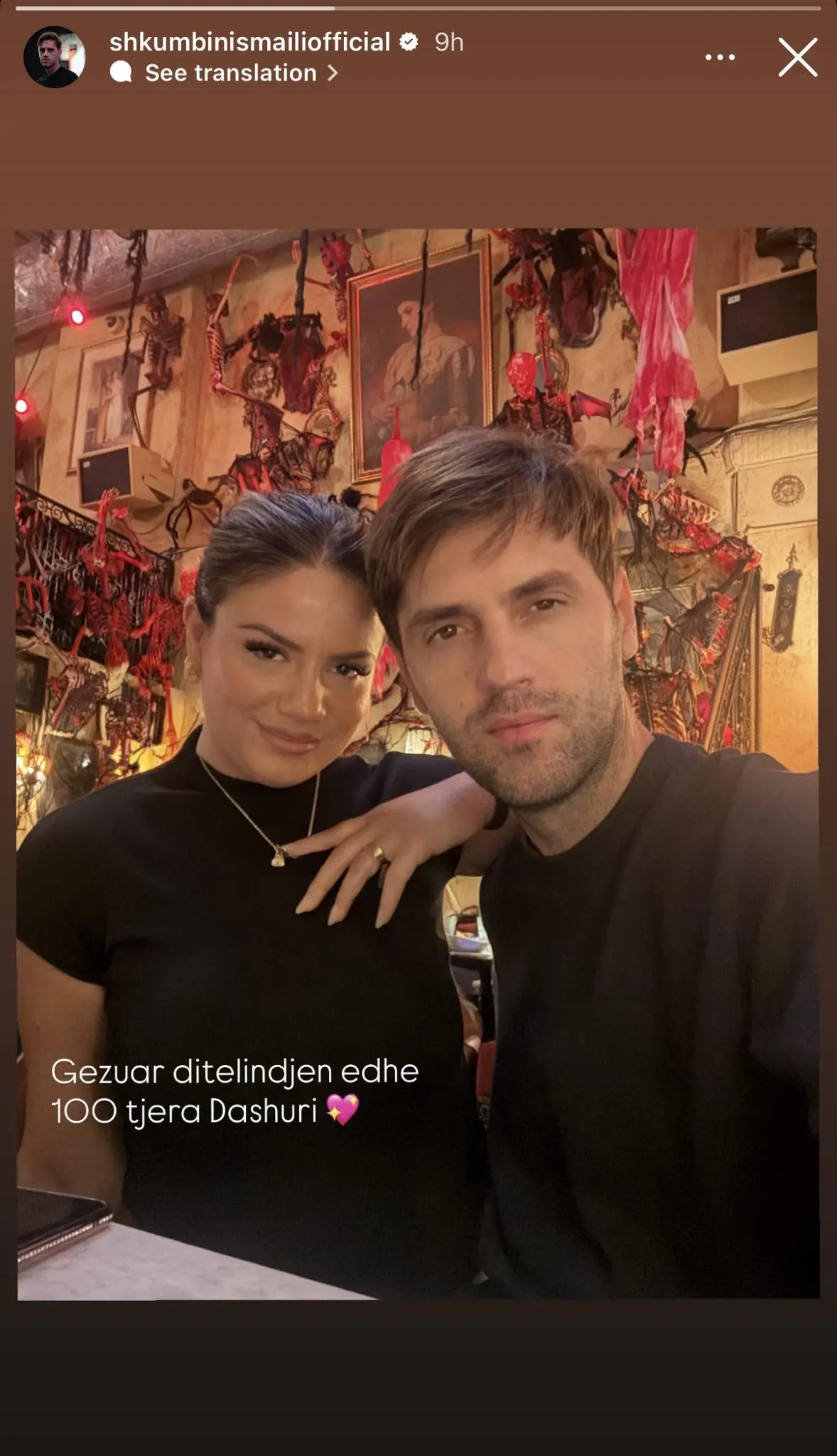 Me një postim të veçantë në rrjetet sociale, ai i ka uruar asaj ditëlindjen me fjalët: “Gëzuar ditëlindjen edhe 100 tjera Dashuri”. Ky mesazh ka shoqëruar një fotografi të bukur të çiftit, duke treguar dashurinë e tyre të sinqertë.