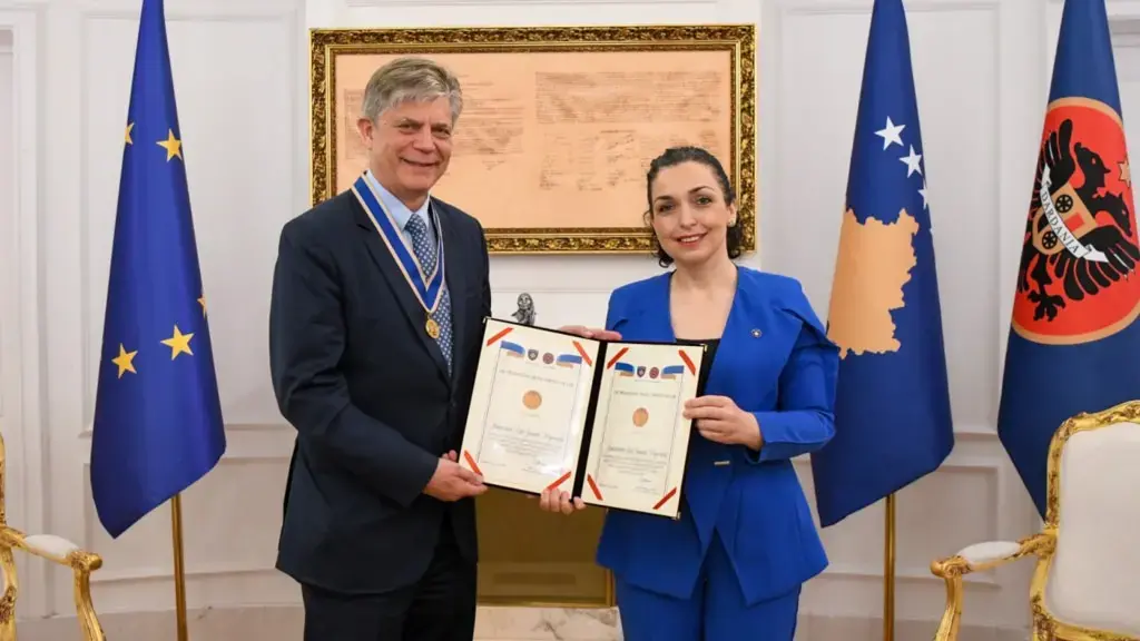 Gjatë takimit, Presidentja Osmani dekoroi shefin e EULEX-it me medaljen presidenciale për sundimin e ligjit.