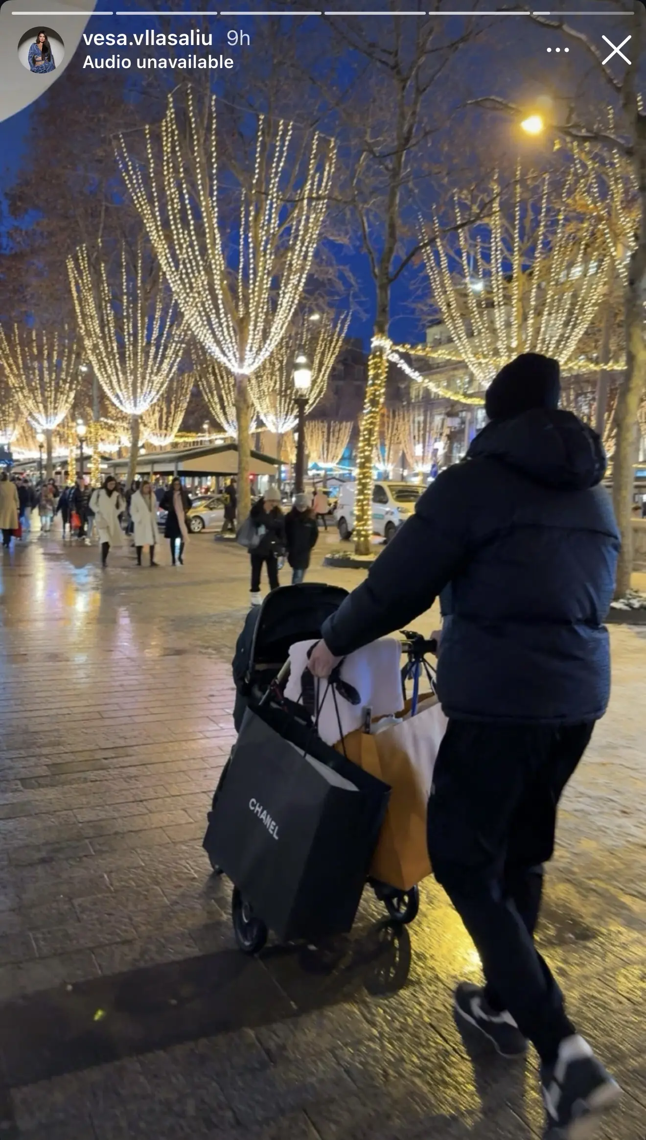 Një imazh tjetër i veçantë tregon Mirlindin, i cili shihet duke shtyrë karrocën e vajzës nëpër rrugët e njohura të Parisit.