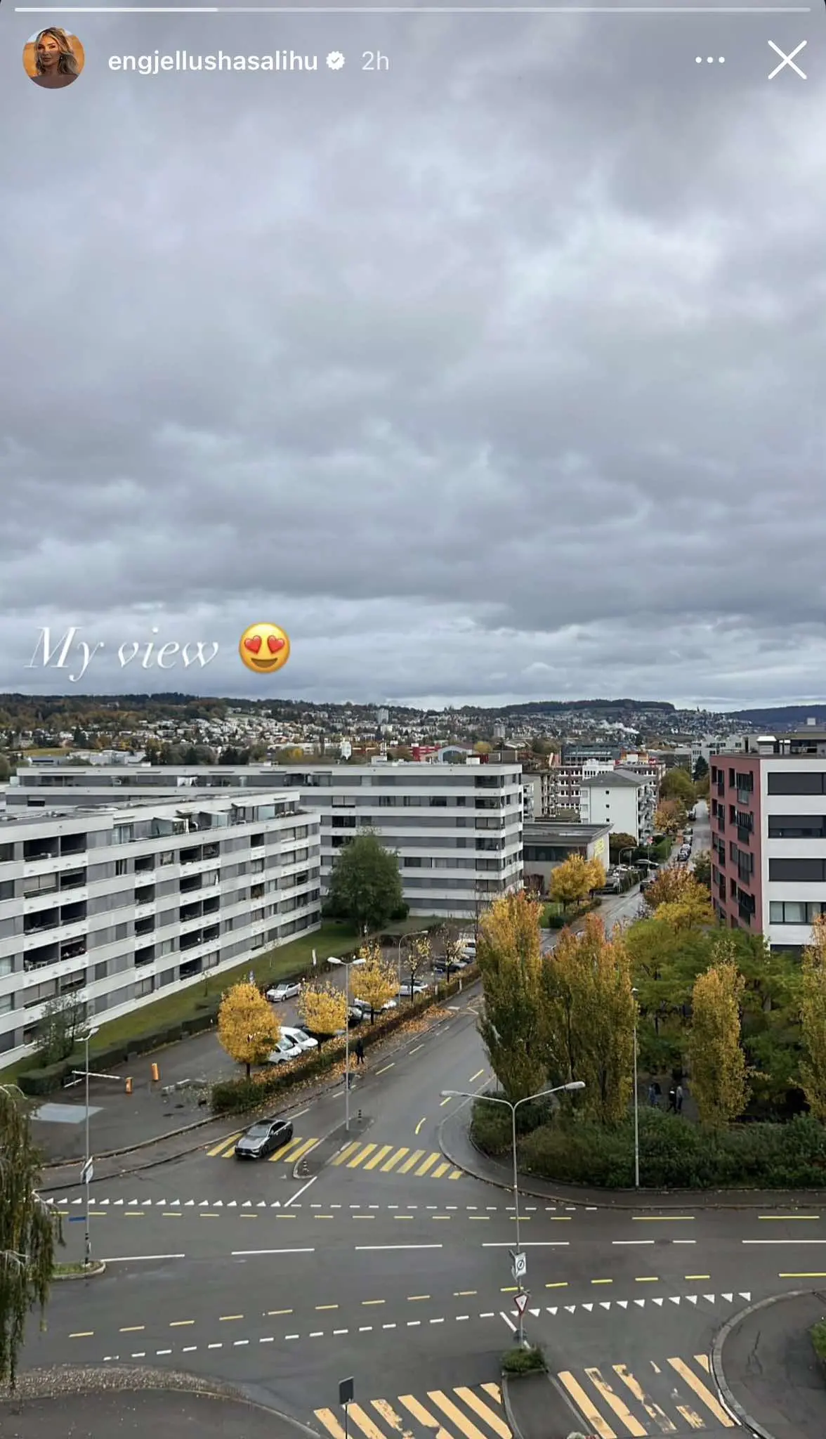 Ajo ka ndarë me ndjekësit një pamje të mrekullueshme nga dritarja e banesës së saj, që tregon një rrugë të qetë dhe të bukur në qytetin ku jeton aktualisht.
