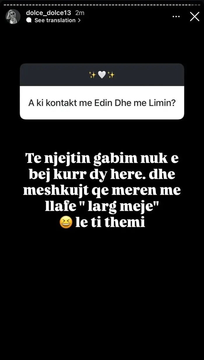 Ndjekësit e saj reaguan me habi, duke e parë këtë si një mesazh të qartë. Edhe pse pak kohë më parë, veprimet e saj me Edin dhe Limin tregonin një afërsi, tani Dolce duket se ka vendosur të ndjekë një rrugë të re, duke u distancuar nga ato që ishin marrëdhënie të ngrohta.