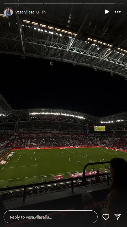 Vesa ka ndarë me ndjekësit e saj në rrjetet sociale momentet e para të jetës së saj në Rusi. Ajo ka postuar një fotografi nga stadiumi i Rubin Kazanit, ku duket se ka shkuar për ta përkrahur Mirlindin gjatë një ndeshjeje të rëndësishme.